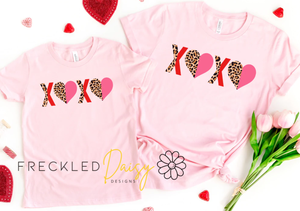 This is available in Toddler-Adult sizing. Keep in mind that the toddler shirts will only have one “XO”