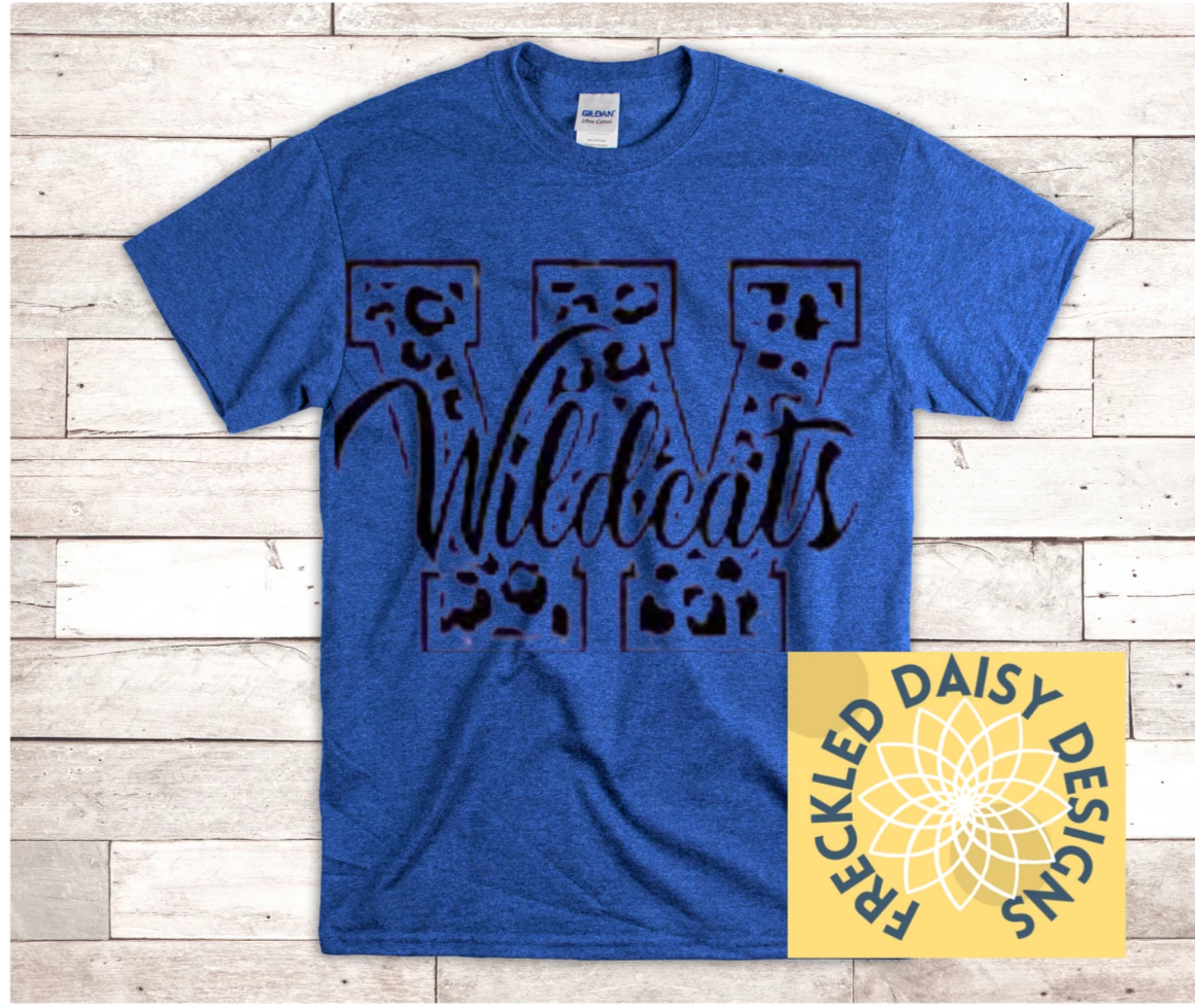 Adorable leopard print “W” Wildcat’s school spirit shirt!